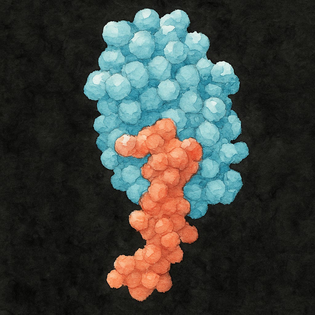 ….whereas hormones and receptors are blobs. Some blobs don’t fit together at all, some fit as well as a key in a lock (strong affinity), and some fit together like puzzle pieces that don’t quite interlock, but are close enough (weak affinity). Receptors are much less specific than locks, and don’t have a 1:1 relationship with hormones even when they are named after one. E.g. GLP-1 Receptor (GLP1R) has strong affinity for GLP1 but also weak affinity for glucagon, because their blob shapes are close enough to each other.